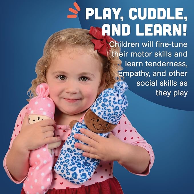 - LEARN WHILE PLAYING: Children will fine-tune their motor skills and learn tenderness, empathy and other social skills while playing and cuddling with these sweet doll learning toys