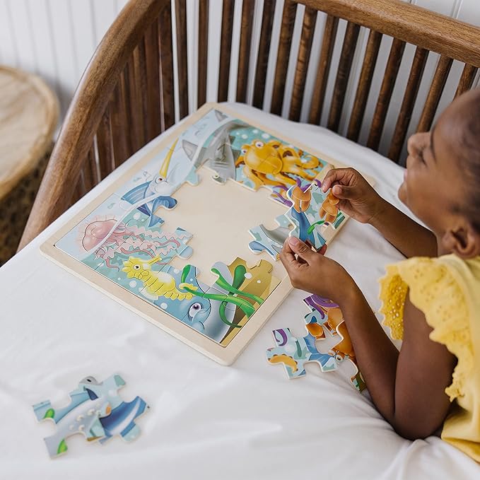 Melissa & Doug Under the Sea Ocean Animals Wooden Jigsaw Puzzle With Storage Tray (24 pcs)