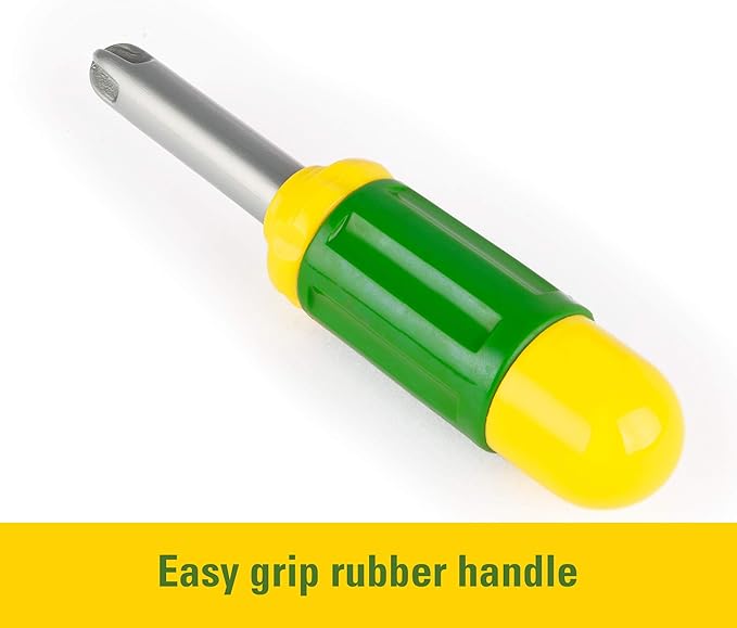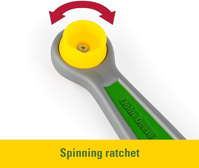 - Pretend Play: This unique John Deere toddler tool set helps kids hone their fine-motor skills and get the job done just like mom and dad with 6 plastic tools and a tool belt