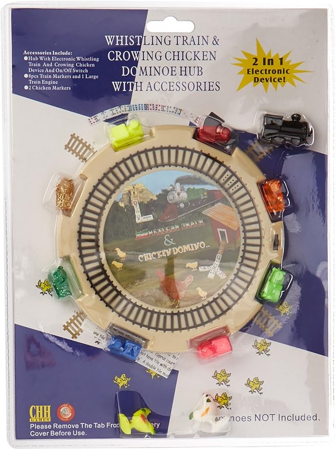 - This hub includes an electronic whistling train, crowing chicken, eight train markers, two chicken markers, and one large train engine.