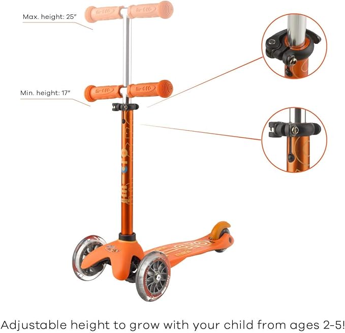 - Micro's 3-wheeled Mini Deluxe kickboard with Lean-To-Steer design, offers a stable ride that supports toddlers and small children as they master balance and coordination.