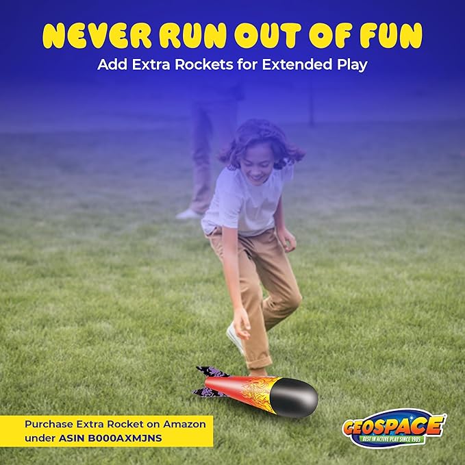 Geospace Hand Held Pump Rocket SR. Size (Single Pump) – Flying Foam Rockets Outdoor Toys for Kids, Boys & Girls – 36" Rocket Set – Hand Stomper Rockets Toy - Cool Toys for Fun