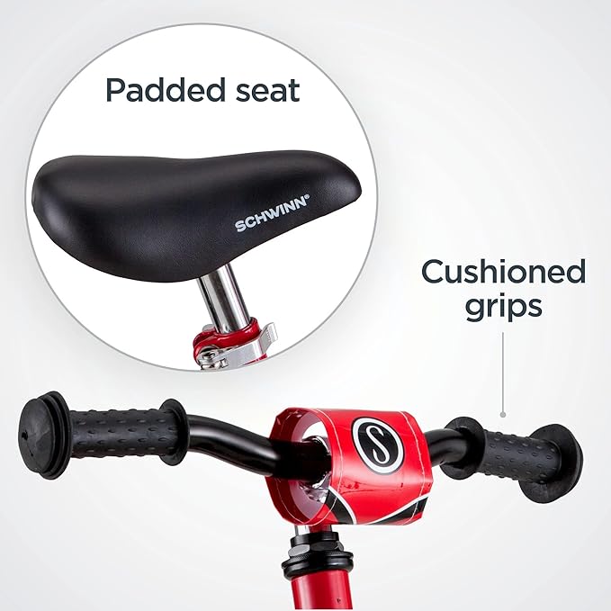 Schwinn Balance Bike, 12 Inch Bike for Kids Ages 2-4, Durable Steel Frame, Padded Seat, Cushioned Grips, Adjustable Seat Grows with Your Child, No Training Wheels Needed, Training Bicycle for Kids