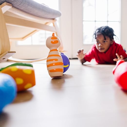 - Toddler Bowling Set for Kids: The Melissa & Doug Bowling Friends set includes 6 soft animal bowling pins, a 4-inch indented bowling ball, and a zippered carry case for travel-friendly fun anywhere