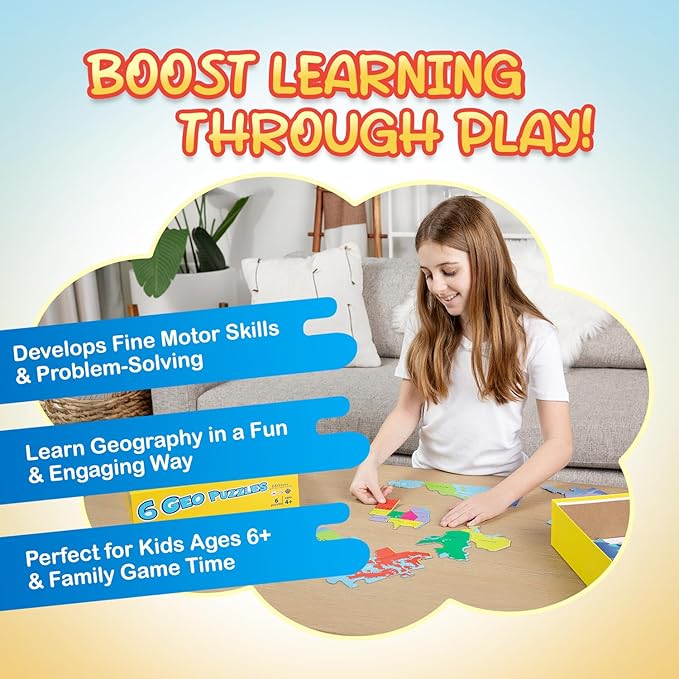 - PUZZLE FOR ALL AGES: This map puzzle for kids age 6+ features large and small pieces to explore the countries of the world. Our geography puzzles include USA & Canada, Europe, Latin America, Asia, Africa, and World map puzzle. A great addition to your kids map puzzle games. Make geography fun with our kids geography map puzzle.