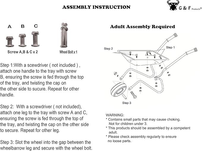 - EASY TO ASSEMBLE AND USE: Setting up this wheelbarrow is a breeze with its straightforward assembly process. No complicated tools or instructions are required, making it simple for parents to put together. Once assembled, kids can immediately start using it for their outdoor adventures. The design is intuitive, ensuring that children can easily maneuver the wheelbarrow and enjoy a smooth, hassle-free experience.