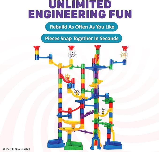 - DESIGNED FOR KIDS: For families looking for a fun, yet challenging activity. Our games for kids are easy to use, and connectors are kid-friendly & fit together snugly, ensuring a stable structure for the marbles to travel through. Parents are assured that the marble track sets are challenging enough for adults to enjoy, yet easy enough for kids to understand. With various sets to choose from, there's something for every level of difficulty. These sets encourage creativity & imagination.