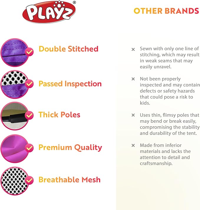 - ❤ BABY APPROVED ❤ We were inspired by dozens of little kids opinions which led to our innovative child-friendly design. Soft thick fabric, breathable mesh walls, and flexible padded structure gives your child the safest enjoyable experience. Playz toys always meet & exceed all USA Toy Safety Guidelines.