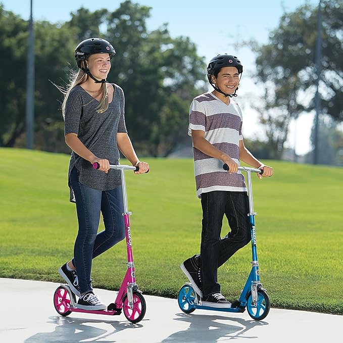 Razor A5 Lux Kick Scooter for Kids Ages 8+ - 8" Urethane Wheels, Anodized Finish Featuring Bold Colors and Graphics, for Riders up to 220 lbs