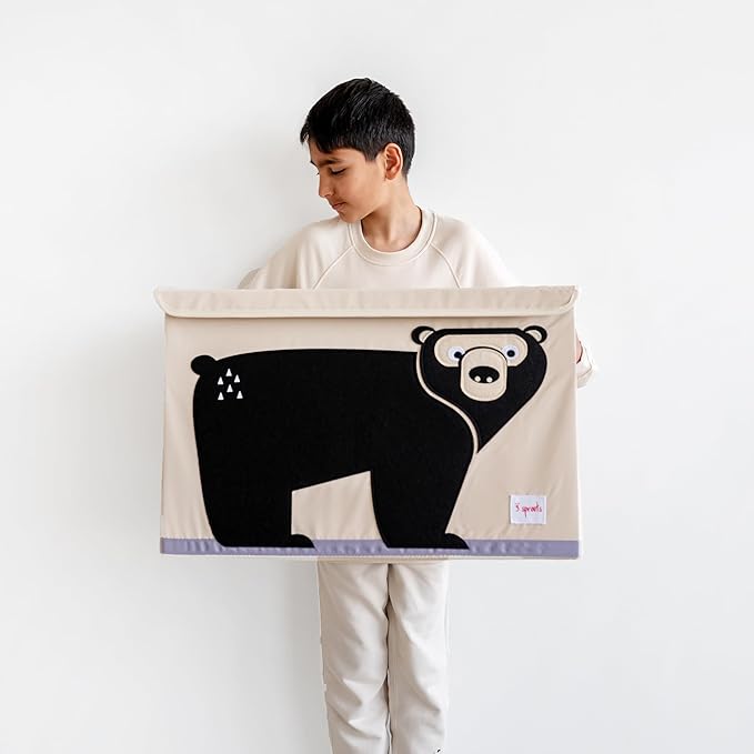 3 Sprouts Large Toy Chest for Kids with Lid and Handles - Collapsible Toy Storage Bin/Trunk/Box/Basket Organizer for Boys & Girls Playroom, Nursery, Bear
