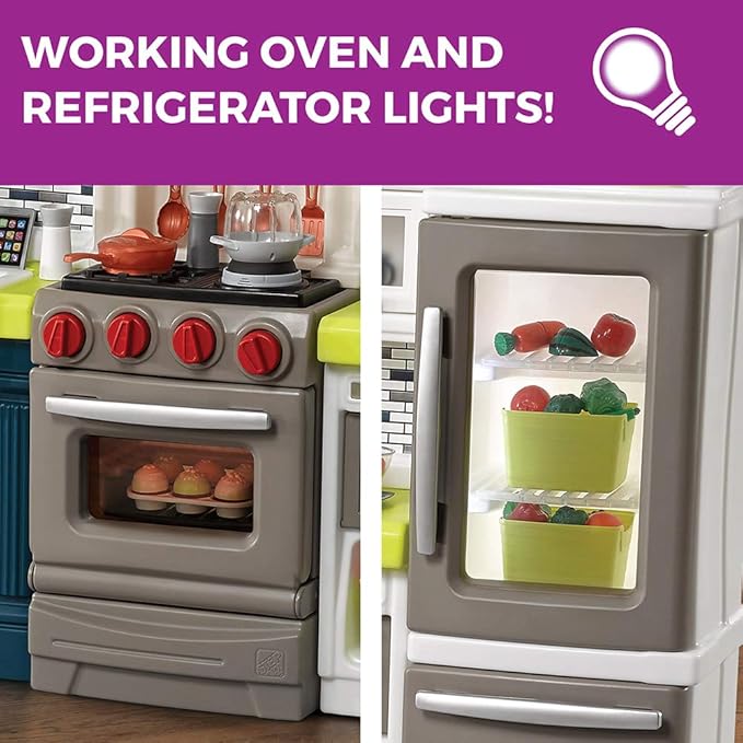 Step2 Elegant Edge Kids Kitchen Playset, Indoor/Outdoor Kitchenette, Interactive Play with Lights and Sounds, Made of Durable Plastic, Includes 78 Piece Toy Accessories, For Toddlers 3+ Years Old