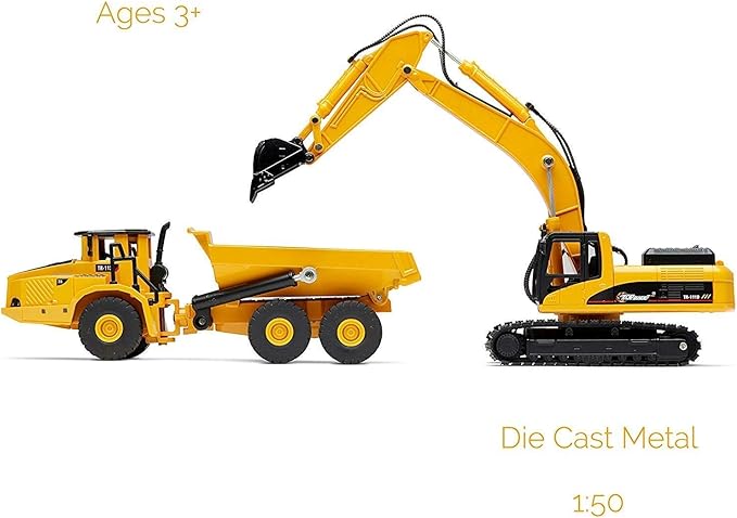 - Realistic Design and Features: The detailed dump truck and toy excavator provide a realistic construction experience; ideal for kids who love building, digging, and operating lifelike toy trucks