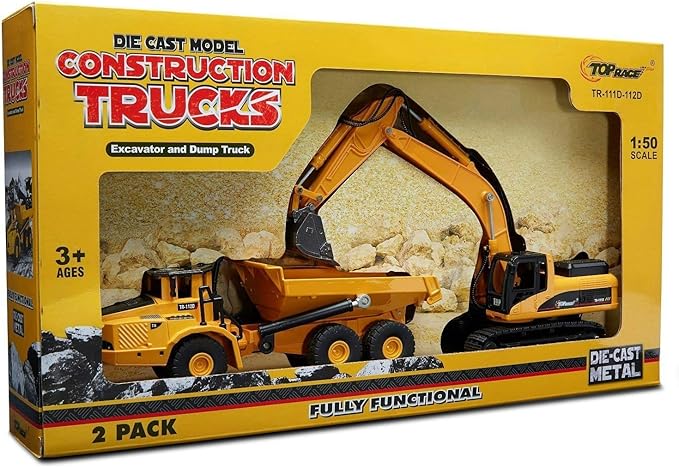 Top Race Construction Toys Set - Metal Excavator Toy, Dump Truck for Kids - Realistic Toy Trucks with Moving Parts for Indoor, Outdoor Play - Durable Construction Vehicles for Boys and Girls
