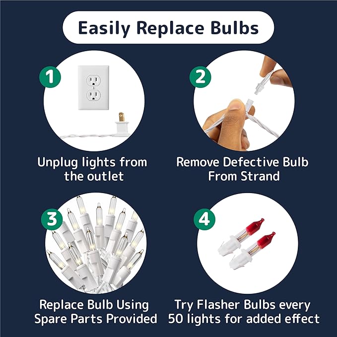 - Customizable Lighting: Includes one red-coated flasher bulb for every 50 bulbs; swap out a standard bulb to create dynamic lighting effects, suitable for festive displays and celebrations.