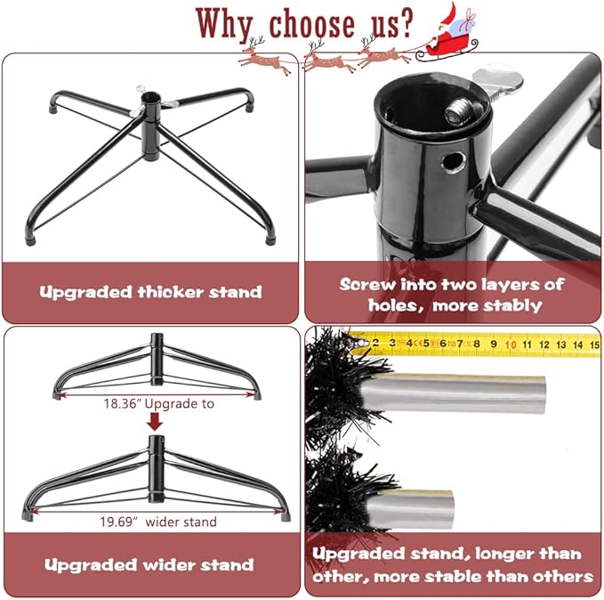 - Sturdy and Durability- metal tree base with 3 Screws provides stability to keep your tree standing more stable.