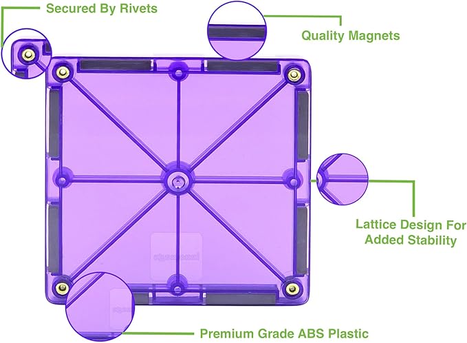 - ✅ UNLEASH YOUR CHILD’S IMAGINATION! Extra Powerful Translucent Magnetic Tile Set 110 Pieces includes 4 Stabilizing Large Squares, 2 Car Base, 32 Squares, 14 Square Windows, 10 Rectangles, 18 Equilateral Triangles, 12 Right Angle Triangles, 8 Isosceles Triangles, and 10 Colorful Snap-ons and a storage bag for 3 Years and Up
