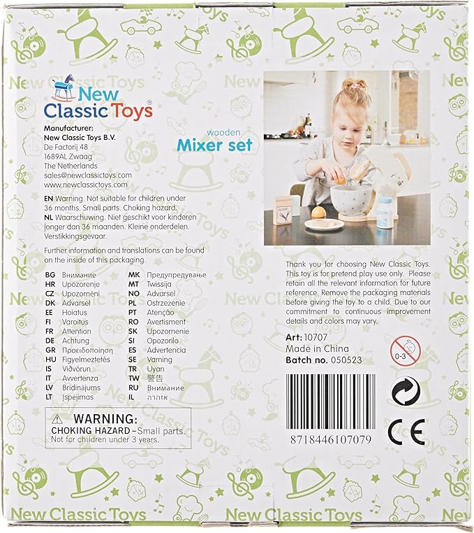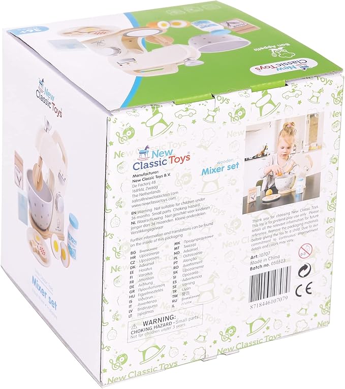 New Classic Toys Wooden Mixer Set Pretend Play Toy for Kids Cooking Simulation Educational Toys and Color Perception Toy for Preschool Age Toddlers Boys Girls , Red,White