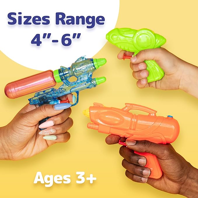- SIZE - The watergun sizes range from 4'' to 6'' inches long all made out of high-quality plastic.