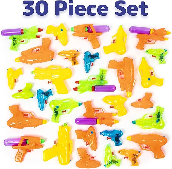 - INCLUSION - This is a pack of 30 water guns of all shapes and sizes in one big bag.
