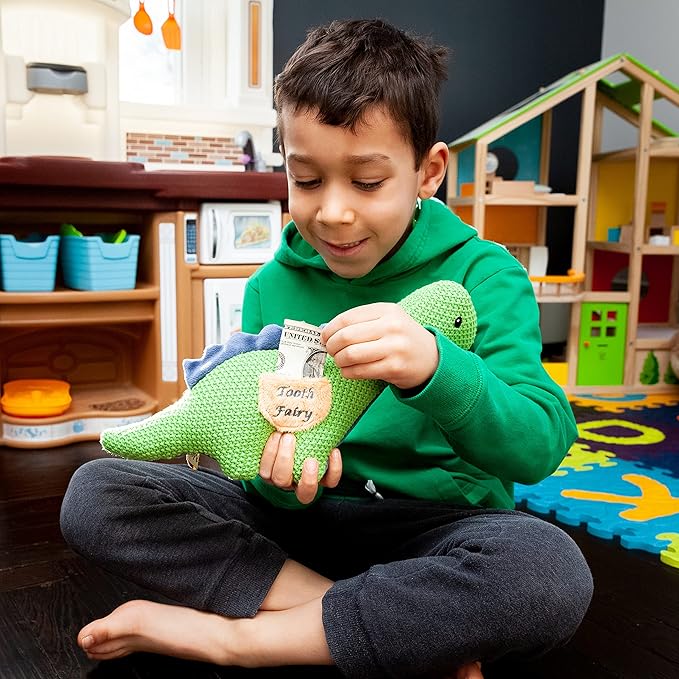 Maison Chic Danny The Dinosaur Tooth Fairy Pillow for Boys – Plush Green Dinosaur with Tooth Pocket for Boys and Girls