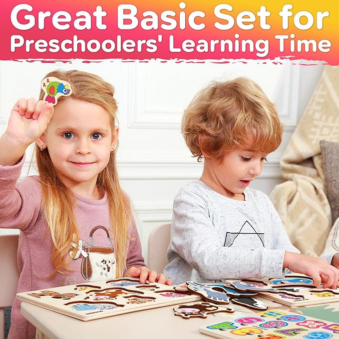 - EASY TO PLAY PUZZLES: toddlers puzzles promote eye-to-hand coordination, develop logical thinking, fine motor and problem-solving skills; Colorful illustrations under each wooden puzzle piece give more educational insights for kids during simple play
