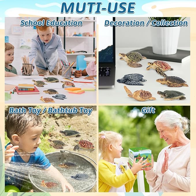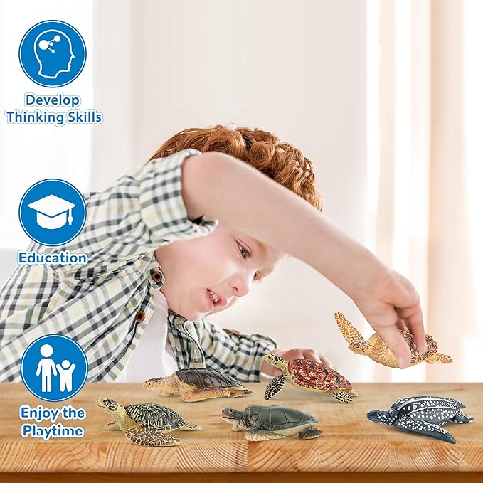 - ✔ SEA TURTLES BIG PARTY - TOYMANY 6PCS Sea Turtle Animal Playset includes 6 different colors of turtles. Kids would like to have a party with them.