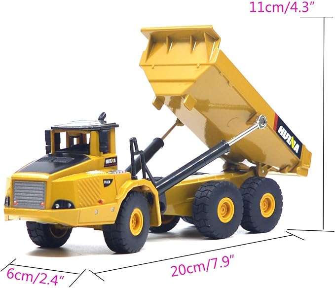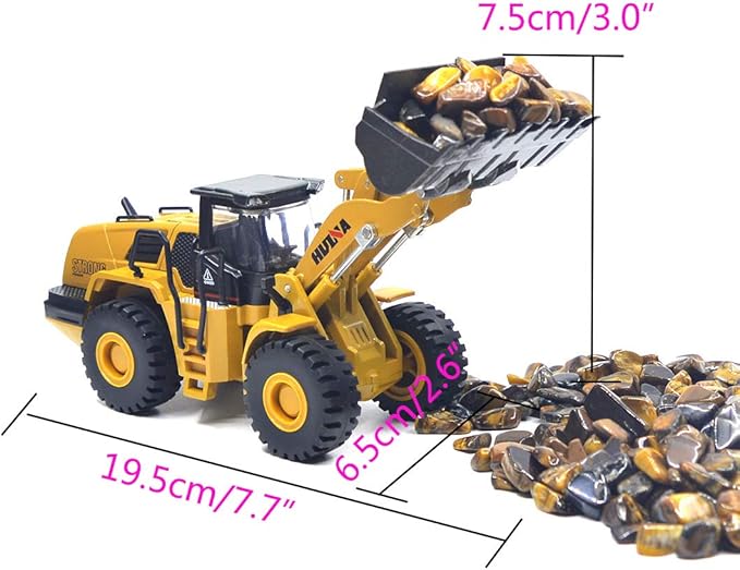- SIZE AND MATERIAL -- Size of Box : approx 16.5"(L) * 3"(W) * 7"(H); It looks very big, It's more like a real Construction machinery;Material: Made of highest quality Zinc alloy abs (except for rubber tires), Able to withstand violent beatings from children.