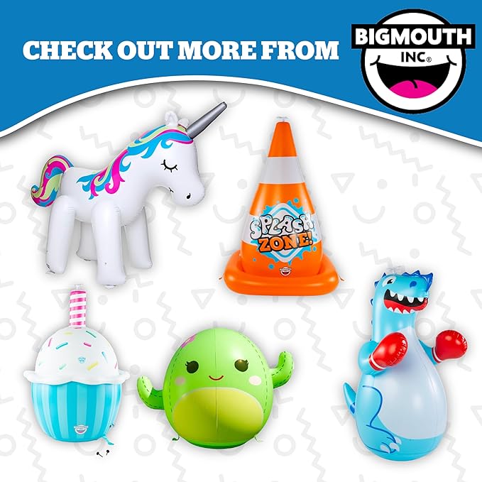 - Big Fun: This huge, inflatable unicorn yard sprinkler stands over 6 feet tall! The magical design and easy use makes this great to own or to give as a fun gift.