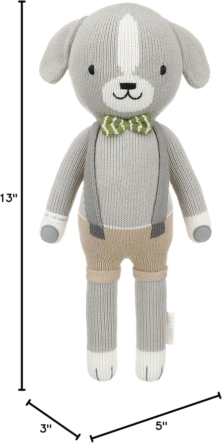 cuddle + kind Noah The Dog Little 13" Hand-Knit Doll – 1 Doll = 10 Meals, Fair Trade, Heirloom Quality, Handcrafted in Peru, 100% Cotton Yarn