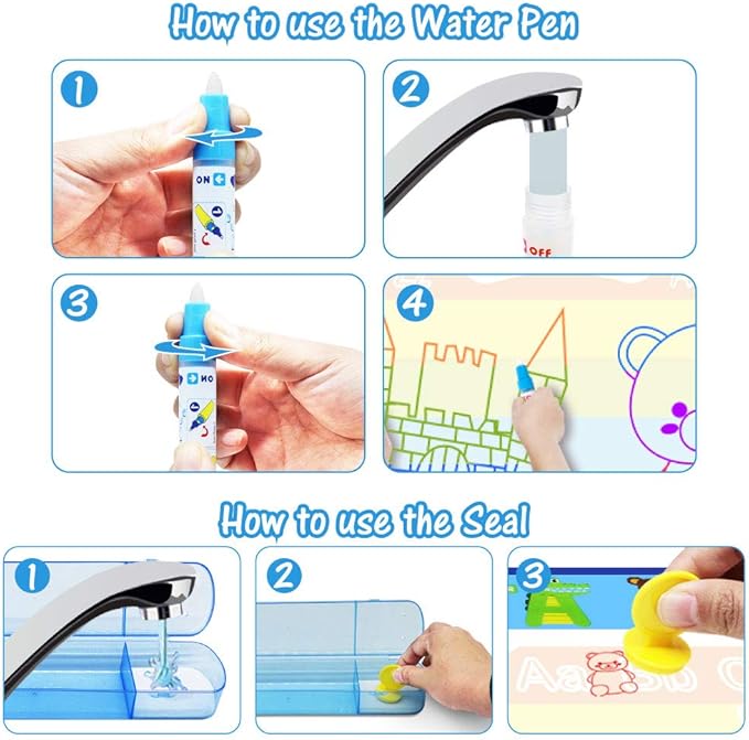 - Aqua Mat - Safe & no mess & easy to clean storage --- No paint, Non-toxic, Non-polluting. No mess with water proof backing. Easy Storage, can be folded into a compact size. Perfect art activities gifts for 2 3 4 5 6 year old girls boys