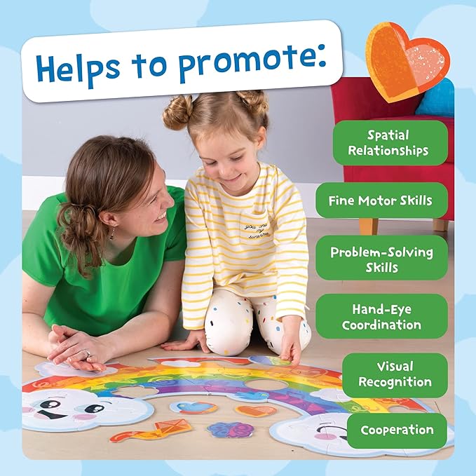 • UNIQUE-DESIGN: This shimmery rainbow floor puzzle includes uniquely shaped pieces with foil accents. The thick and sturdy pieces include a kite, heart, bird, and other fun shapes.
