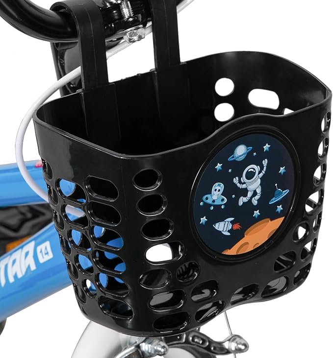 - DESIGN FOR KIDS - 1.This kids bike comes with flash training wheel, basket and water bottle for early rider. 2.Quick release seat simplify the height adjustment. 3.Saddle with holder to learn riding when the training wheel is off. 4. Foot brake and handbrake easy to provide phenomenal stopping power when needed.