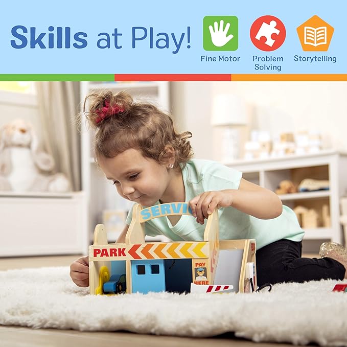 Melissa & Doug Service Station Parking Garage With 2 Wooden Cars and Drive-Thru Car Wash (SIOC)