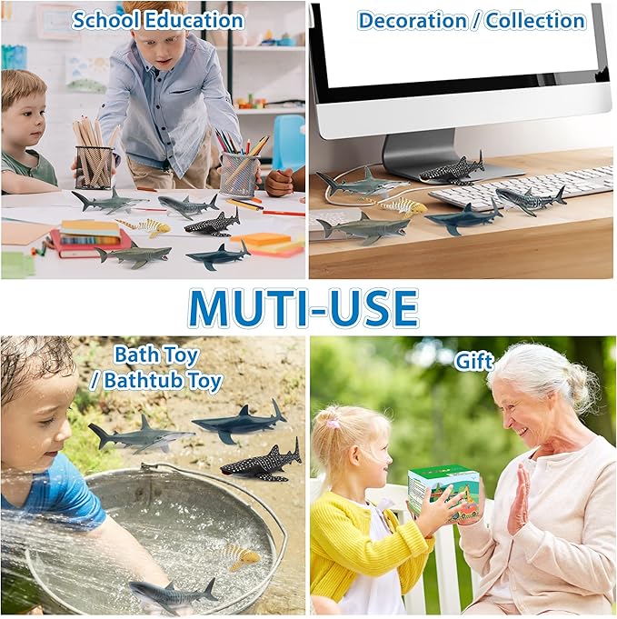 - ✔ AWESOME BIRTHDAY GIFT - Such cute & different varieties of animal figures are worth to be collected, decorating children's bookcase, desk and room. It's an awesome birthday gift or prize for kids, also it would be a good idea to use them as the cake toppers and make a shark animal-themed cake for your children. They would love that so much.