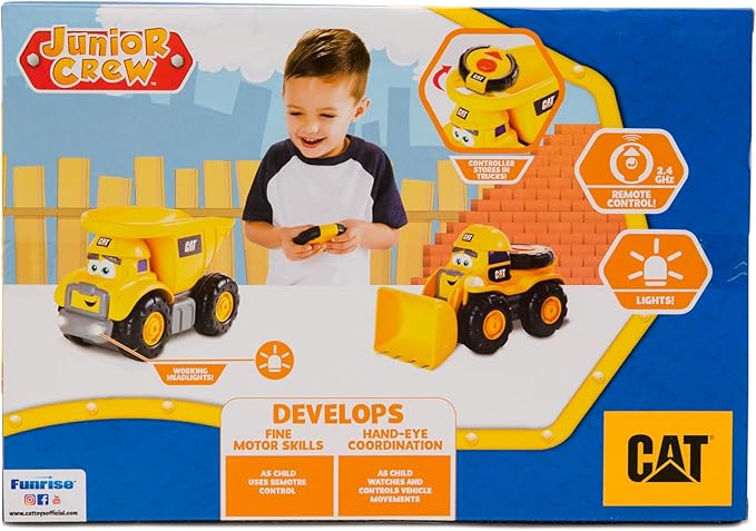 CAT Construction Toys, Junior Crew Lil' Movers Remote Control Truck, RC Car + Dump Truck, Working Headlights, with Child Friendly Controller