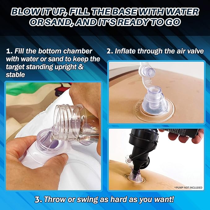 - THE BEST SPORTS INFLATABLE TARGET – The colors and graphics on this carnival game are crisp and sharp. When fully inflated, the sports target measures 5 feet (60 inches) tall and has a 12-inch target opening.