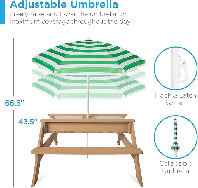 - 3-IN-1 DESIGN: Remove the table top to reveal two plastic activity bins and turn this picnic set into either a sand table or a water table! NOTE: Play-grade sand is sold separately