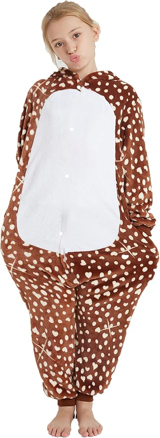 - Hooded animal deer fawn reindeer onesie pajamas, tail design