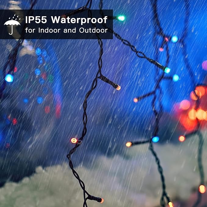 - ✨ IP55 Waterproof & Safe to Use - The christmas fairy light with IP55 waterproof design is very suitable for indoor and outdoor decoration, suitable for all kinds of weather conditions, even if it is raining or snowing. Christmas light has approved the UL certification, the output voltage is 29V, which is lower than the human body safety voltage, no danger of electric shock. The string lights will stay cool even long time use. So that you and your family can safely enjoy the fun of lighting.