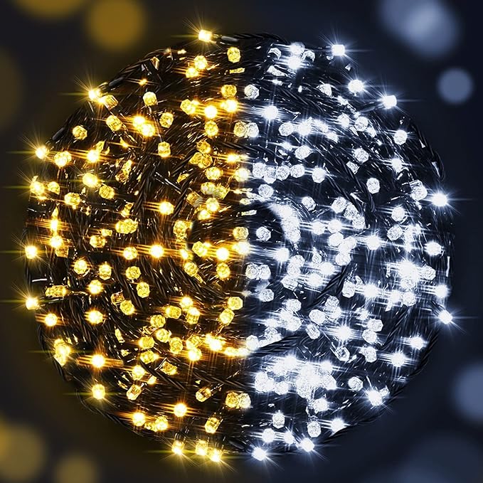 AmyHomie Color Changing Christmas Lights, 108Ft 300LED White Warm White String Lights, 8 Modes Waterproof Fairy String Lights for Outdoor & Indoor Christmas Tree Home Patio Garden Decor