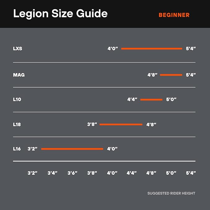 - Legion L10 is a great first BMX bikes for beginners with standard 20 Inch wheels, the recommended rider's height is 4'4" to 5'0"