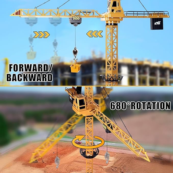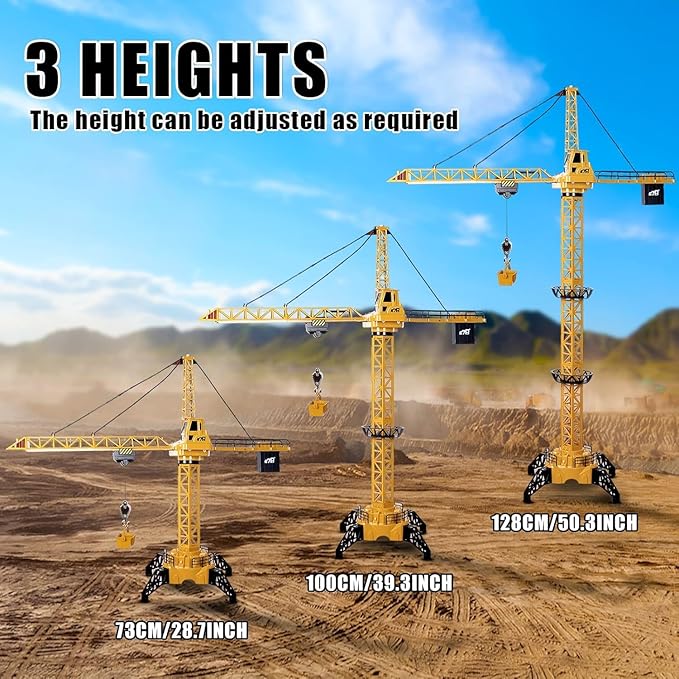 - Realistic Construction Play: Bring the excitement of a real construction site to life with this 6-channel RC Mega Tower Crane, towering at an impressive 50.4 inches. Designed for hands-on, authentic play, kids can control every movement with the precision of a 2.4GHz remote.