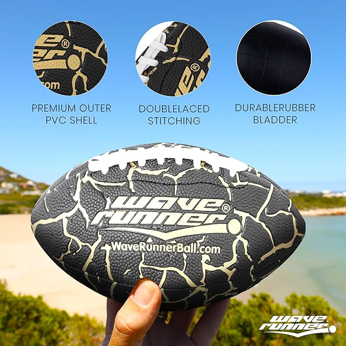 Wave Runner Grip It Waterproof Junior Size Football, 9.25 Size, Durable & Double Laced, Perfect for Beach Accessories, Kids Games, Pool Toys, Outdoor Games, All-Weather Indoor & Outdoor Play