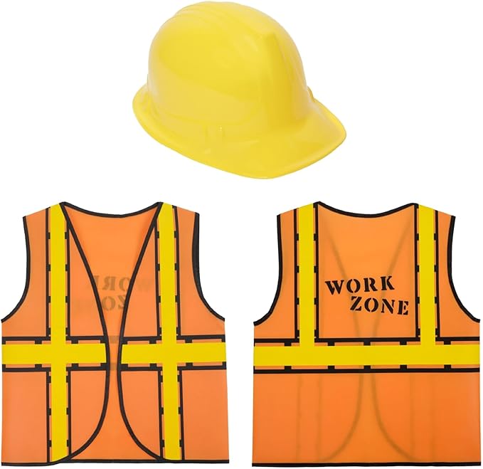 - Complete Kids Construction Costume: Each set includes a bright orange kids construction vest and a sturdy kids construction hat, perfect for dress-up, pretend play, or Halloween