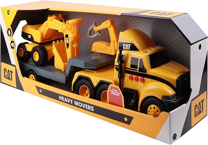 CAT Construction Toys, Heavy Mover, Semi Truck and Trailer with Construction Fleet Excavator, Lights and Sounds, Ages 3 and up