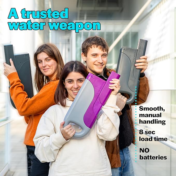 - SEVERAL DESIGN OPTIONS: Incog water guns for adults and kids ages 8-12 and over are available in 4 sleek color combinations: grey/blue, grey/red, light grey/purple and light grey/yellow. Every squirt gun from Team Magnus is delivered in the same secure gift packaging with an easy to follow water gun maintenance manual.