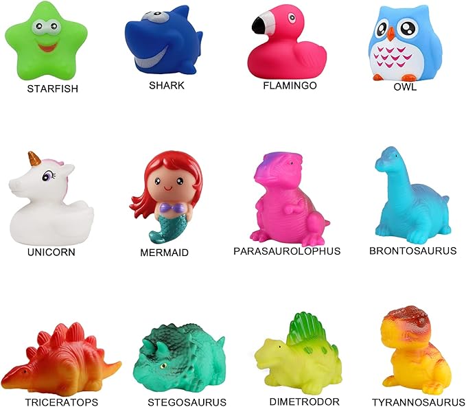 Baby Bath Toys,12 Packs Light Up Floating Rubber Toys Flashing Color Changing Light in Water Bathtub Shower Games Toys for Baby Kids Toddler Child …