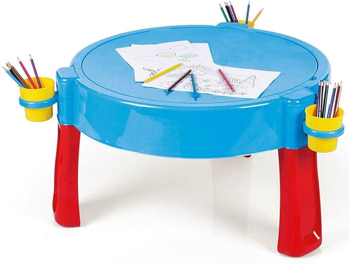 - MULTI-USE! So many ways to play with this fun activity table! Add sand for an easy-to-clean play pit or use the attachments with water to splash around. If you want some downtime, convert the table into a drawing desk to create your masterpieces.