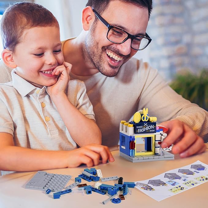 8 Packs Mini City Shop Street View Building Blocks Kit,MOC Construction Creative Educational Kit with Hair Salon & Café Store,Girls Boys Dream Toy Set,Christmas Birthday Party Favors for Kids