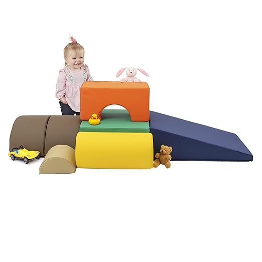 - CRAWL OR STACK: a configurable climber for new crawlers becomes a soft block playset as they grow; designed for infants and toddlers exploring new textures and colors, learning to grasp and play; foldable half moon speed bump becomes a seat perfect for story time